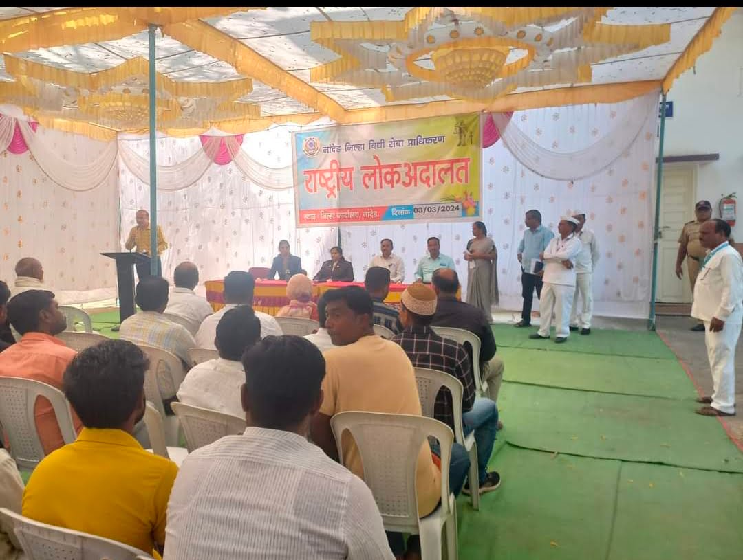 नांदेड जिल्ह्यातील प्रत्येक तालुका न्यायालयात तसेच कौटुंबिक न्यायालयात राष्ट्रीय लोकअदालतीचे आयोजन करण्यात आले होते. जिल्हा सरकारी वकिल तसेच जिल्हयातील सर्व सन्माननिय विधिज्ञ आणि भूसंपादन अधिकारी, आयुक्त मनपा, महसुल विभाग अधिकारी तसेच मुख्य कार्यकारी अधिकारी, जिल्हा परिषद नांदेड व प्रबंधक, जिल्हा न्यायालय नांदेड व सर्व न्यायालयीन कर्मचारी यांचे मोलाचे सहकार्य लाभले. या लोकअदालतीमध्ये जास्तीत जास्त प्रकरणे निकाली काढून लोकअदालत यशस्वी करण्यासाठी जिल्हा विधी सेवा प्राधिकरणाच्या अध्यक्षा तथा प्रमुख जिल्हा न्यायाधीश सुरेखा कोसमकर, जिल्हा विधी सेवा प्राधिकरणाच्या सचिव श्रीमती दलजीत कौर , मुख्यालयातील व तालुकास्तरावरील सर्व जिल्हा न्यायाधीश, दिवाणी न्यायाधीश यांनी विशेष प्रयत्न केले. जिल्हा विधी सेवा प्राधिकरणाच्या सचिव श्रीमती दलजीत कौर जज यांनी उपस्थित असलेल्या सर्व पक्षकार तसेच सर्व न्यायाधीश, विधीज्ञ, सर्व न्यायालयीन कर्मचारी वृंद यांनी परीश्रम घेतले तसेच ही लोकअदालत यशस्वी करण्यासाठी प्रत्यक्ष व अप्रत्यक्ष सहकार्य केलेल्या सर्वांचे आभार मानले तसेच यापुढेही अशा सहकार्याची अपेक्षा व्यक्त केली.