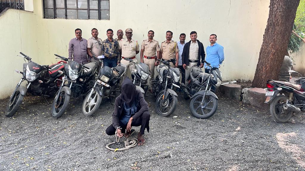 पो.स्टे. विमानतळ नांदेड येथील गुन्हे शोध पथका प्रमुख पो.उप. निरी. श्री जाधव, सोबत पोहेकॉ / 2166 राठोड, पो.हे.कॉ / 2403 पठाण, पो.हे.कॉ /721 जावेद, पो.कॉ /67 भिसे, पो.कॉ/72 कुलथे, पो.कॉ / 621 डोईफोडे यां सर्वाना मोटार सायकल चोरीचे आरोपीची माहीती प्राप्त झाली की, पोलीस स्टेंशन विमानतळ नांदेड येथील गु.र.न. 375/2023 कलम 302,120 (ब) भा.द.वि. व सह कलम 04/25 भा.ह.का. मधिल आरोपी नामे विश्वास परमेश्वर शिंदे वय 21 वर्ष व्यवसाय बेकार रा. शारदानगर नांदेड हयाने नांदेड शहरातील विविध ठिकाणच्या मोटार सायकल हया चोरी केलेल्या आहेत. त्यावरुन सदर गुन्हयातील आरोपी यास पोलीस स्टेशन विमानतळ नांदेड गु.र.न. 339/2023 कलम 379 भा.द.वि. मध्ये संशयीत रित्या मा.न्यायालच्या परवानगी ताब्यात घेवुन त्यास अटक करुन त्याची पो.क.रि. दरम्यान विश्वासात घेवुन विचारपुस केली असता त्याने सदर गुन्हयातील वाहना सोबत इतर पाच मोटार सायकल हया काढुन दिल्या आहेत. असे एकुण 4,20,000/- रुपयाचा मुद्देमाल जप्त केला आहे.