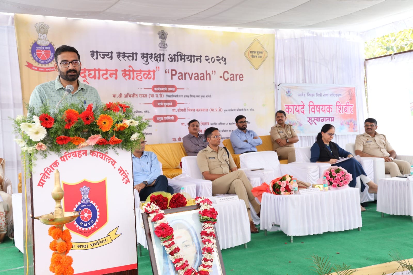 १ जानेवारी ते ३१ जानेवारी पर्यंत परिवहन विभागामार्फत राज्य रस्ता सुरक्षा अभियान २०२५ राबविण्यात येणार असून, त्याकरिता ‘पर्वा ‘ अर्थात इंग्रजी मधील केअर ही थीम घोषीत करण्यात आली आहे. सदर अभियानाचे उद्घाटन ०३ जानेवारी रोजी प्रादेशिक परिवहन कार्यालय, नांदेड येथे अभिजीत राऊत, जिल्हाधिकारी, नांदेड यांच्या हस्ते करण्यात आले.