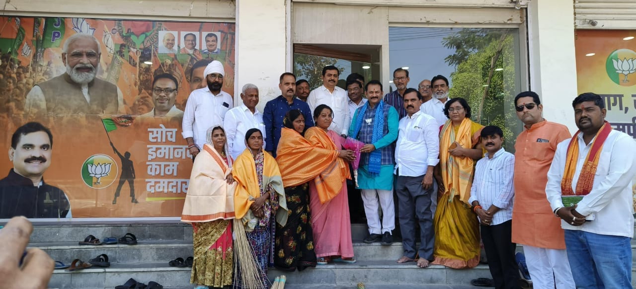 जागतिक महिला दिनानिमित्त भाजपा जिल्हा अध्यक्ष डॉ . संतुकराव हंबर्डे यांच्या वतीने सफाई कामगारांचा सत्कार