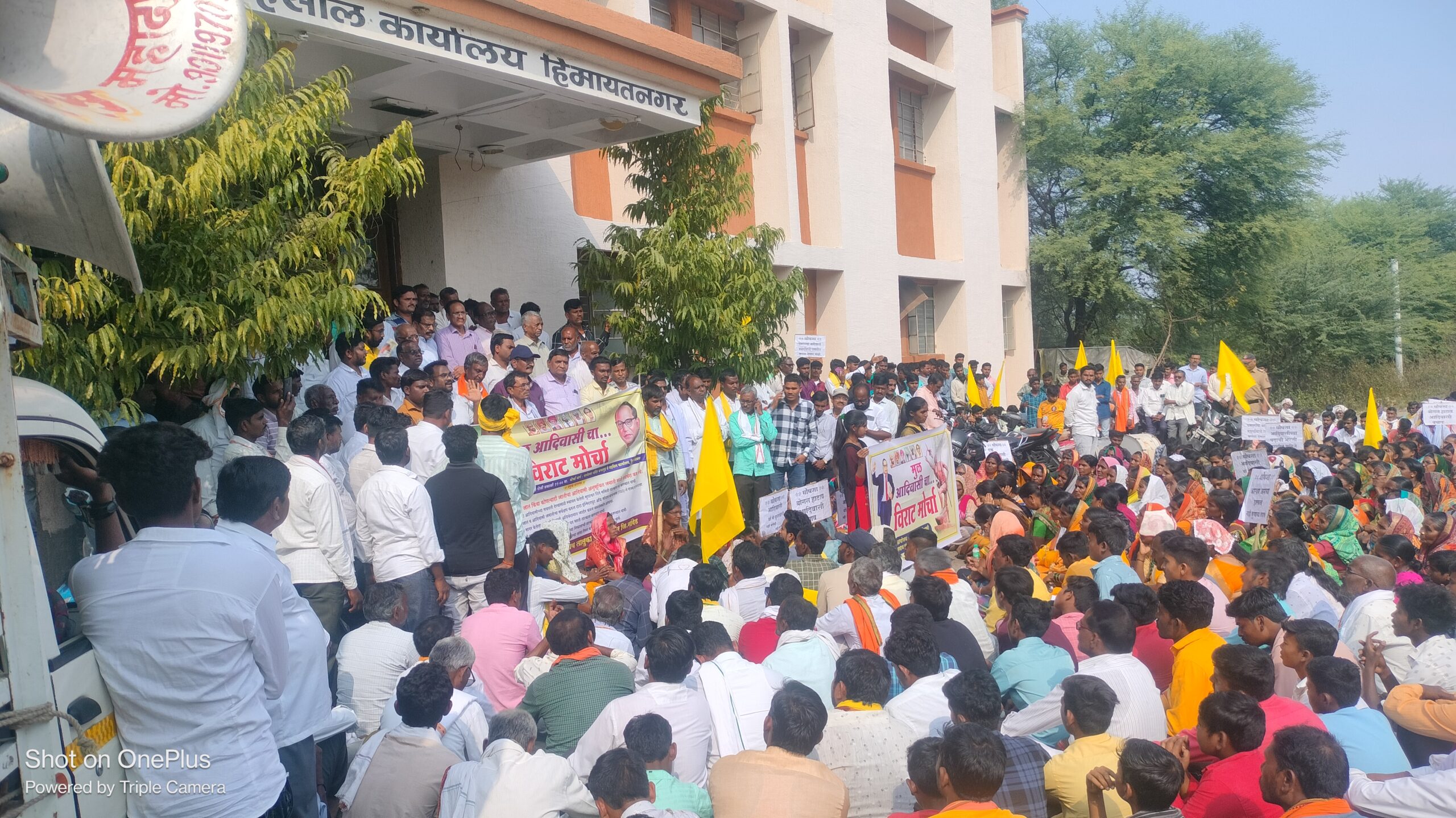 याबाबत सविस्तर वृत्त असे की आज दिनांक 13 डिसेंबर रोजी हिमायतनगर तालुक्यातील आदिवासी समाज बांधवांच्या विविध मागण्याचा विराट मोर्चा तहसील कार्यालयावर धडकला यावेळी हिमायतनगर शहरातील श्री परमेश्वर मंदिर परिसरात तालुक्यातील आदिवासी बांधव व महिला हजारोच्या संख्येने उपस्थित राहून धनगर जात किंवा इतर कोणत्याही जातीला आदिवासी अनुसूचित जमातीमध्ये समावेश करू नये, धनगर जातींना आदिवासींच्या सवलती देण्यासाठी स्थापन केलेली सुधाकर शिंदे समिती तात्काळ रद्द करावी, धनगर जात व आदिवासी जमातीचा सर्वेक्षण करून टाटा इन्स्टिट्यूट ऑफ सोशल सायन्स ने राज्य शासनाला सादर केलेला अहवाल हिवाळी अधिवेशनात जाहीर करून जनतेसमोर आणावा यासह हिमायतनगर येथील आदिवासी मुला मुलींचे वस्तीग्रह व सुविधेसह स्वातंत्र्य इमारत बांधण्यासाठी शहरालगत जागा उपलब्ध करून द्यावी अशा विविध मागण्याचे निवेदन महाराष्ट्राचे राज्यपाल यांना हिमायतनगर येथील तहसीलदार मार्फत देण्यासाठी सेल्फ रिस्पेक्ट मुव्हमेंट ऑफ इंडिजिनस पीपल्स आणि ऑर्गनायझेशन फॉर राइट्स ऑफ ट्रॅव्हल या आदिवासी संघटनांच्या मार्फत हिमायतनगर येथील तहसील कार्यालयावर हजारो आदिवासी समाज बांधवांचा मोर्चा धडकला तेव्हा तेथे तालुक्यातील आदिवासी समाज बांधवांचे ज्येष्ठ नेते तथा सेवानिवृत्त पोलीस उपाधीक्षक दत्तात्रेय वाळके साहेब, वैद्यकीय अधीक्षक डॉक्टर गायकवाड साहेब, संजय माझळकर, माजी जिल्हा परिषद सदस्य सत्यवृत्त ढोले,यांच्या सह ज्येष्ठ नेत्यांनी समाज बांधवांना मार्गदर्शन करत येथील तहसीलदार यांना आदिवासी समाज बांधवांच्या विविध मागण्याचे निवेदन देऊन तात्काळ याची अंमलबजावणी करण्याची मागणी केली….