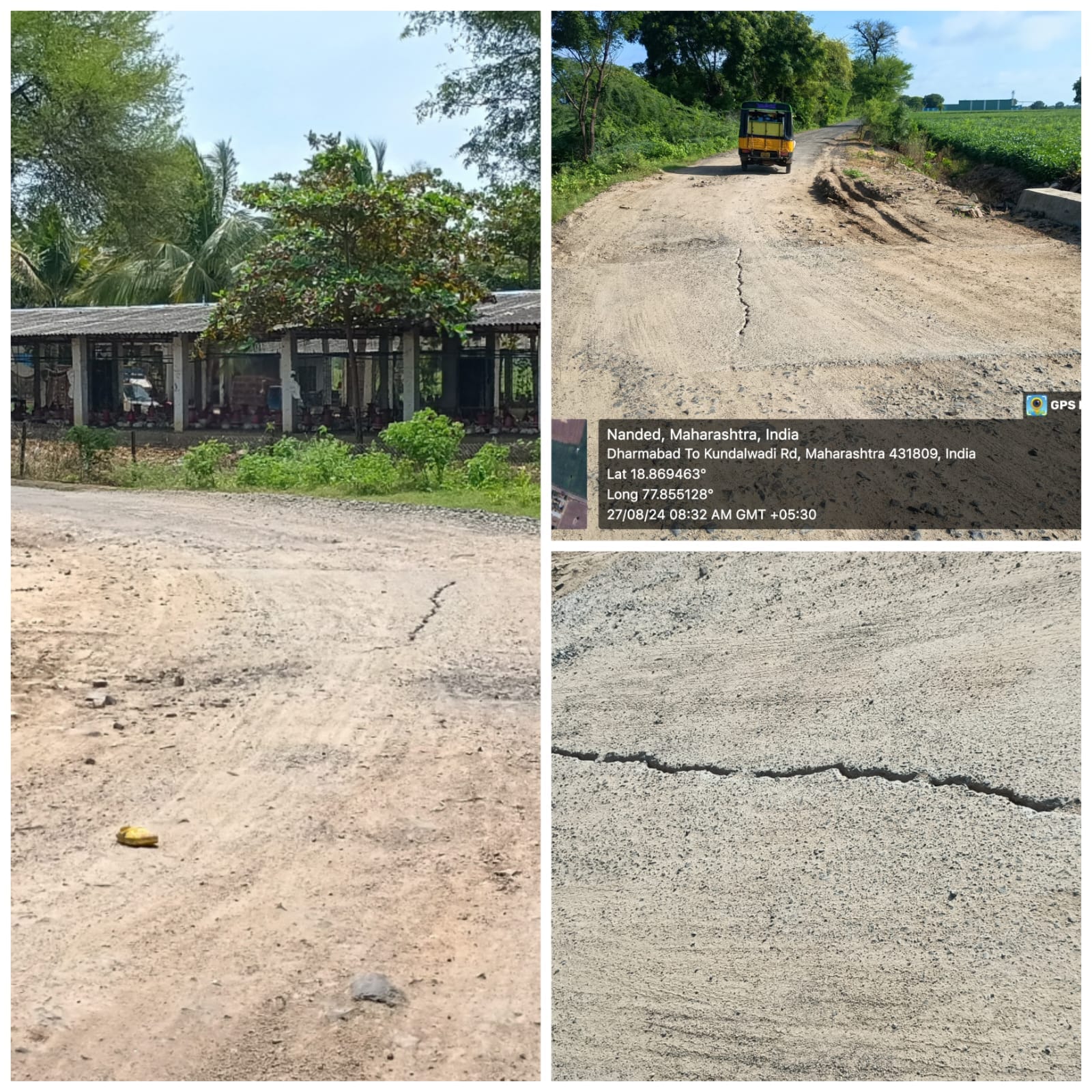 ग्रीन फील्ड शाळेत सिरज खोड कडे जाणाऱ्या रस्त्यावर टी पॉइंट पासून साधारण एक किलोमीटर अंतराच्या आत पोल्ट्री फार्म जवळ रस्त्यावर एक लहान पूल बांधण्यात आले आहे मात्र या पुलाचे काम अंदाजपत्रकाप्रमाणे न करता कमी दर्जाचे मटेरियल वापरून निकृष्ट केल्याचे दिसून येत आहे. परिणामतः सहा महिन्यांपूर्वीच बांधलेल्या या पुलाच्या मधोमध उभी भेग पडली असून येणाऱ्या काळात लवकरच पुलाची अवस्था दयनीय होईल, यात शंकाच नाही. विशेष म्हणजे या रस्त्याने सिरजखोड, बामणी,मनुर,संगम तसेच गोदावरी मांजरा नदीच्या पवित्र संगमावर असलेले श्री संगमेश्वर मंदिर या ठिकाणांकडे जाणाऱ्या येणाऱ्या नागरिकांची नेहमी वर्दळ असते, तसेच सदरील रस्ता आलूर- बेल्लुर मार्गे आंतरराज्य महामार्गाला जोडतो. त्यामुळे सदरील कामाचे गांभीर्य लक्षात घेता निकृष्ट झालेल्या कामाची चौकशी करून संबंधित गुत्तेदारावर कार्यवाही करण्यात यावी अशी मागणी स्वाभिमानी ब्रिगेड संघटनेचे धर्माबाद तालुकाध्यक्ष दत्तात्रय सज्जन सिरजखोडकर यांनी लेखी निवेदनाद्वारे उपअभियंता, सार्वजनिक बांधकाम उपविभाग धर्माबाद यांच्याकडे केली आहे. यावेळी दत्तात्रय सज्जन, संजय झगडे, राजेश सोनकांबळे, गंगाप्रसाद सोनकांबळे आदी उपस्थित होते.