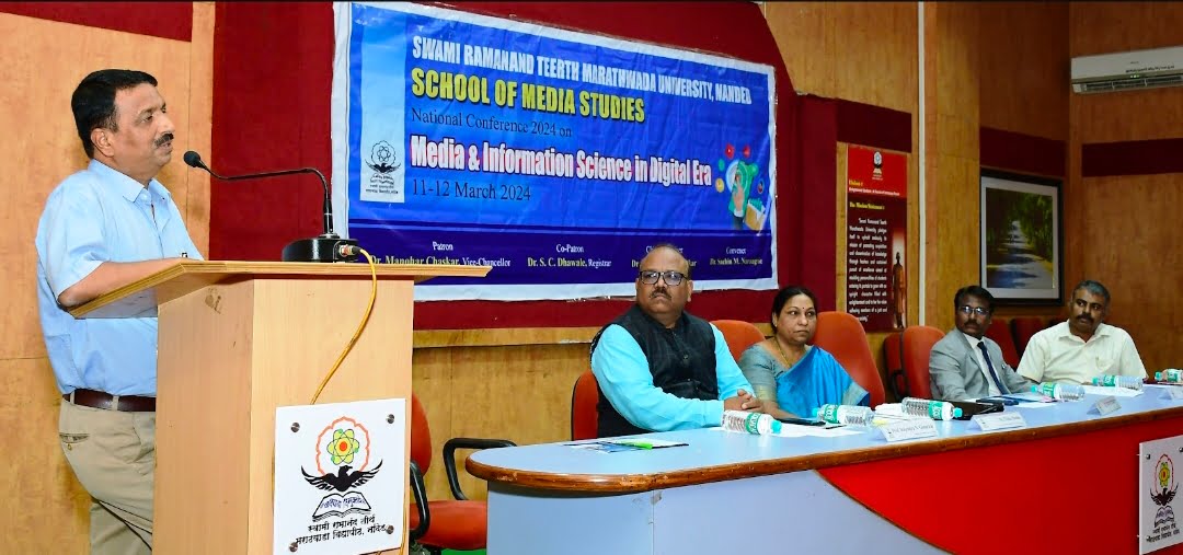 स्वामी रामानंद तीर्थ मराठवाडा विद्यापीठाच्या माध्यमशास्त्र संकुलाच्यावतीने ‘डिजिटल युगात माध्यमे आणि माहितीशास्त्र’ या विषयावर अधिसभा सभागृहात आयोजित दोन दिवसीय राष्ट्रीय चर्चासत्राच्या उद्घाटन प्रसंगी अध्यक्षीय समारोप करतांना ते बोलत होते. यावेळी मंचावर कोल्हापूरच्या शिवाजी विद्यापीठाच्या वृत्तपत्रविद्या विभागप्रमुख डॉ. निशा मुडे-पवार, मुंबई विद्यापीठाच्या जनसंवाद विभागाचे प्रमुख डॉ. सुंदर राजदीप, आंतरविद्याशाखीय अभ्यास विद्याशाखेचे अधिष्ठाता डॉ. चंद्रकांत बाविस्कर आणि माध्यमशास्त्र संकुलाचे संचालक डॉ. राजेंद्र गोणारकर उपस्थित होते.