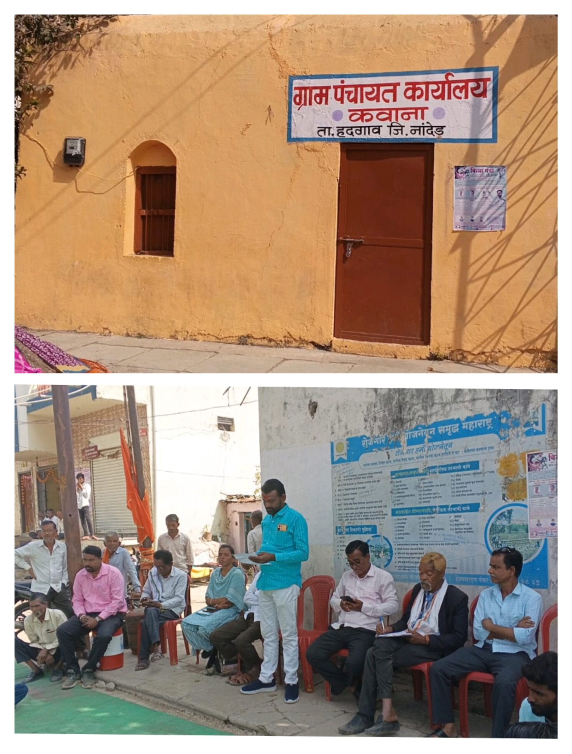 हदगाव तालुक्यातील मौजे कवाना येथे ग्रामसभेचे आयोजन करण्यात आले त्या ग्राम सभेमध्ये उपस्थित ग्रामसेवक सरपंच व उपसरपंच व सर्व सदस्य यांना त्यांच्या कार्यकाळामध्ये कोणकोणते विकास कामे झाली, किती निधी आला, किती वापरला यासंदर्भात गावकऱ्यांनी प्रश्न उपस्थित केला. तसेच गावातील रस्ते, पाणी, लाईट व स्मशानभूमी या संदर्भात सुद्धा मोठ्या प्रमाणात गावकऱ्यांनी प्रश्न विचारून आपल्या शंकाचे निरासन केले. तसेच संबंधित स्मशानभूमी ही गट क्रमांक 33 मध्ये झाली पाहिजे या आशयाचे पत्र सर्व गावकऱ्यांनी ग्रामसेवक यांना दिले. यावर विचार करून गायरान जमिनीवरील स्मशानभूमीचे काम थांबवण्यात येईल. असे माध्यमांशी बोलताना सांगितले. गावांमध्ये होणारे कामे हे आपल्या सर्वांना विचारात घेऊन करण्यात येईल असे आश्वासन दिले व मागील चार वर्षाच्या काळातील उपसरपंच प्रतिनिधी संदीप पवार यांनी त्यांच्या चार वर्षाच्या कार्य काळामध्ये जी कामे केली ती सर्वांसमोर मांडली यावेळी आणि पूर्णत्वास नेली असे माध्यमांशी बोलताना सांगितलं ग्रामसेवक यांनी सर्व गावकऱ्यांचे अभिनंदन केले .